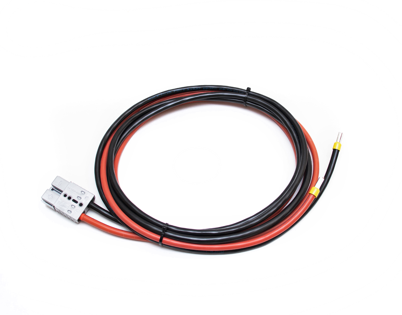 Кабель имеет длину 5 м. Разъём со стороны ИБП – TD120А «Андерсон». Трубчатый наконечник используется для подключения к автомату защиты батарей. Сечение кабеля – 16 мм².