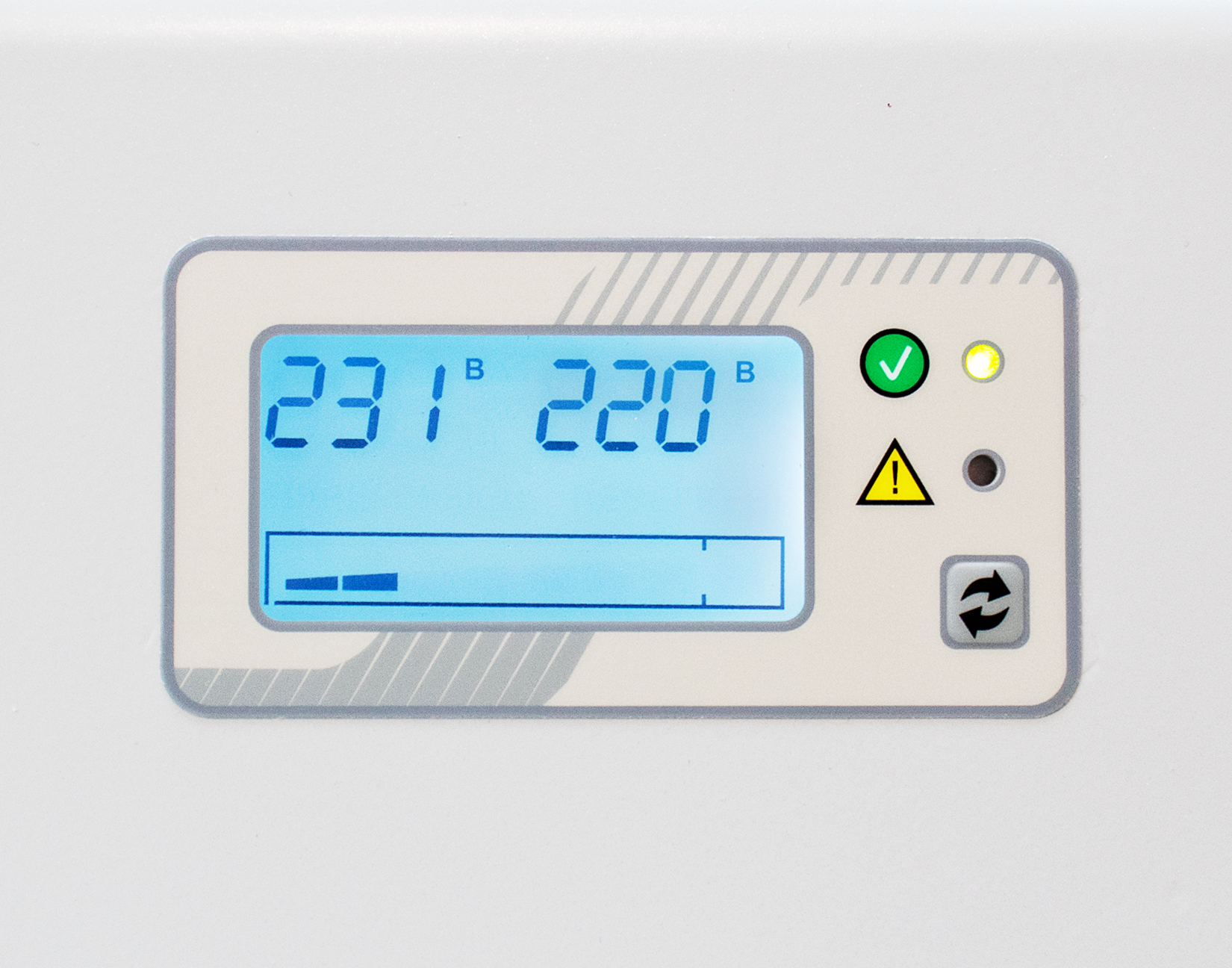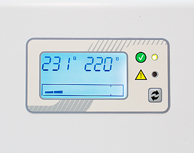 Для удобного контроля стабилизатор оснащён панелью управления с ЖК-дисплеем, светодиодной индикацией и функциональной кнопкой.