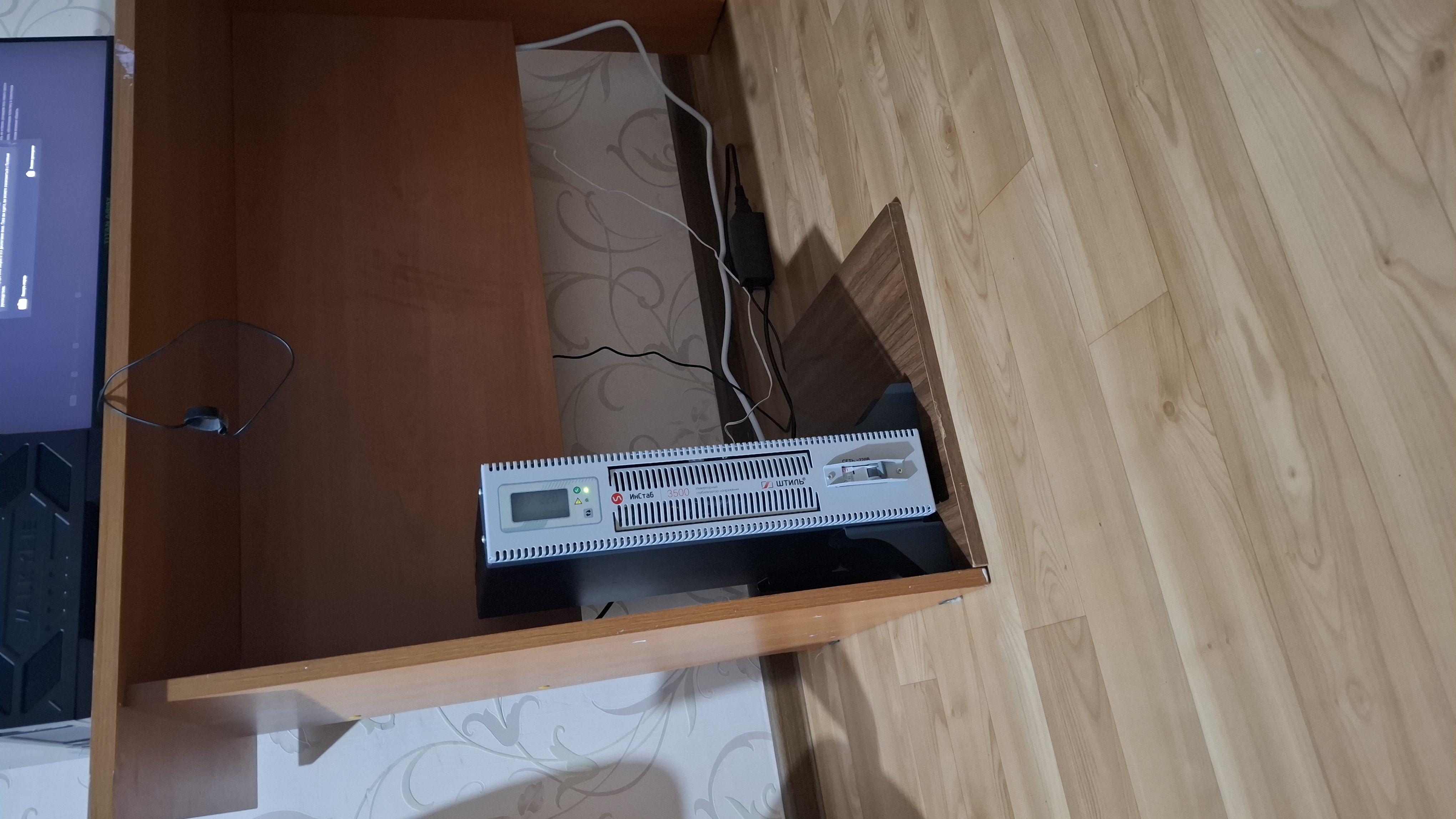 Для размещения стабилизатора в стойке или шкафу без полки потребуется дополнительно приобрести комплект для монтажа, который обеспечит поддержку устройства по всей его глубине.