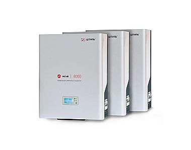 Комплект из трех настенных стабилизаторов IS8000 – это готовое решение по защите от нестабильного сетевого напряжения в сети 380 В однофазных ответственных электроприборов бытового или коммерческого назначения с суммарной потребляемой мощностью до 24 кВА/21,6 кВт, например: